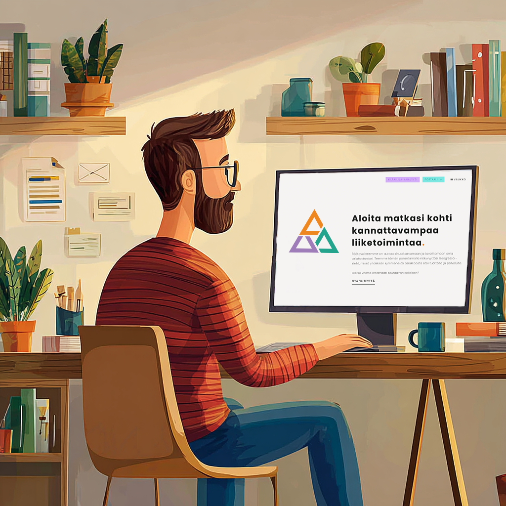 Matti päättää päivittää sivustonsa. Hän on ymmärtänyt, että käyttäjäystävällinen, informatiivinen ja aktiivinen verkkosivusto ei ainoastaan luo kävijöille parempaa ensivaikutelmaa, vaan mahdollistaa myös paremman näkyvyyden Googlessa.